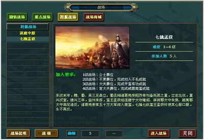 七擒孟获讲的是三国时,诸葛亮出兵南方,将当地酋长孟获捉住七次,放了七次,使他真正服输,不再为敌。曾经你是否也钦慕过诸葛亮的军事才能?也想尝试一番诸葛亮用兵如神的计谋呢?诸葛亮曾经对孟获使用过的放虎归山、翁中之憋等计谋,现在你也可以在《热血三国》中尽情的体验一番啦!