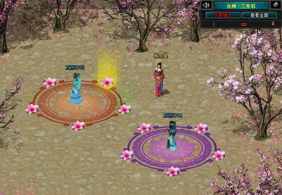 按照4399《明朝时代》的游戏规则,同一个国家的玩家才能组队,男女两个角色组成队伍后(如果缺少另一方,可以在世界频道上邀请本国异性玩家与自己共赴桃花源)。队伍只能是男女两人,组好之后双方同前往“台州”,找到台州城西南的“三生石”,这是通往迷艳桃花阵的芝麻之门。