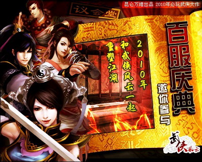 2010年5月6日,昆仑万维旗下大型武侠RPG网页游戏《武侠风云》将开启第100组服务器!为了迎接这一历史性时刻的到来,《武侠风云》将举办“百服庆典盛宴”,邀你与千万玩家们一起见证辉煌!