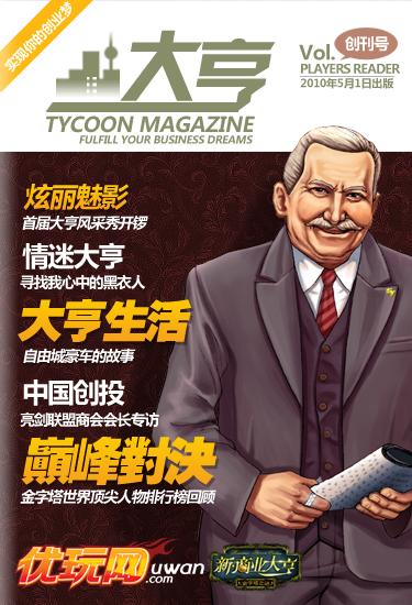 体验创业激情,玩转商业风云;大亨故事,激情由你.《大亨》杂志各栏目长期征集各类稿件,并征集玩家真人秀场,有机会成为《大亨》封面人物哦!