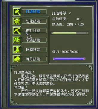 如果是采集矿石的话,玩家需要到特定的地方去,也就是矿场。在矿场中,玩家将根据几率挖到铜矿石、铁矿石或者精钢石等,当然也有几率挖空,得到矿石的好与坏,速度的快与慢都和采集技能的等级有关。