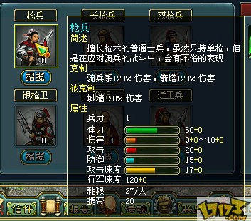 游戏中的兵种非常强大,在兵营中的兵种他们有相互制约,相克。玩家在战争时最好要有相互配合的兵种搭配要不会非常吃亏,有时在兵种优势上是可以少胜多。