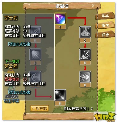 技能根据不同的职业有不同的职业辅助技能和职业主动技能,另外还有共同的驭兽技能,加强宠物属性。