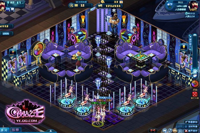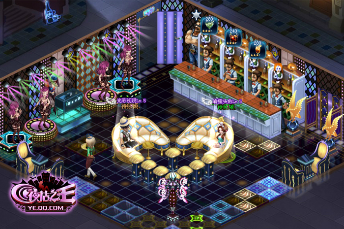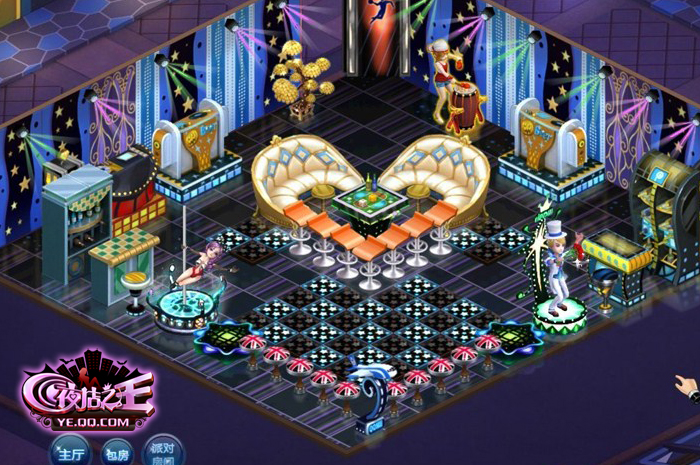 《夜店之王》画面风格采用的是2D写实风格。游戏经营画面参考了时下时尚夜店的装修风格,玩家人物时装设计更是紧跟世界潮流步伐,力图提供给玩家一个充满时尚和活力的夜店模拟经营社交游戏。作为一款充满新鲜创意理念的社交网页游戏,集合了四大特色于一身:豪华装饰,诱人美酒。酷炫时尚的夜店装饰由玩家亲自设计打造,而丰富多样的酒水库存与调酒技能也将为玩家的酒吧增添文艺魅力。劲爆动感的音乐,时尚的店面装扮,以及神秘诱人的吸血鬼客人。吸引每一位客人,你就是天空之舞!